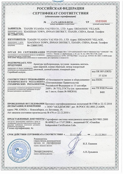 鐵制閥門證書