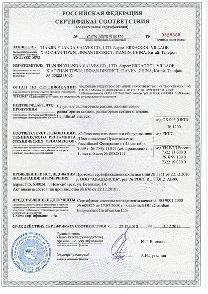暖氣片證書